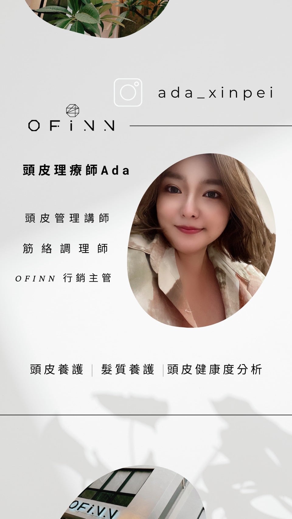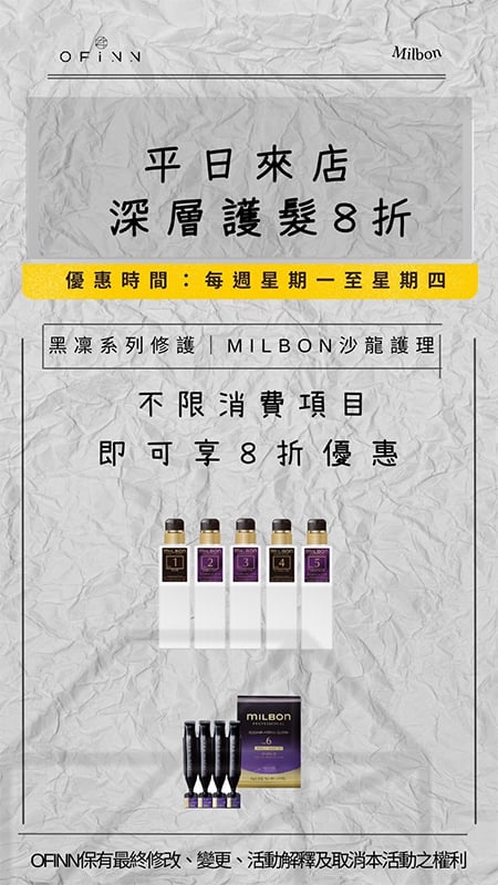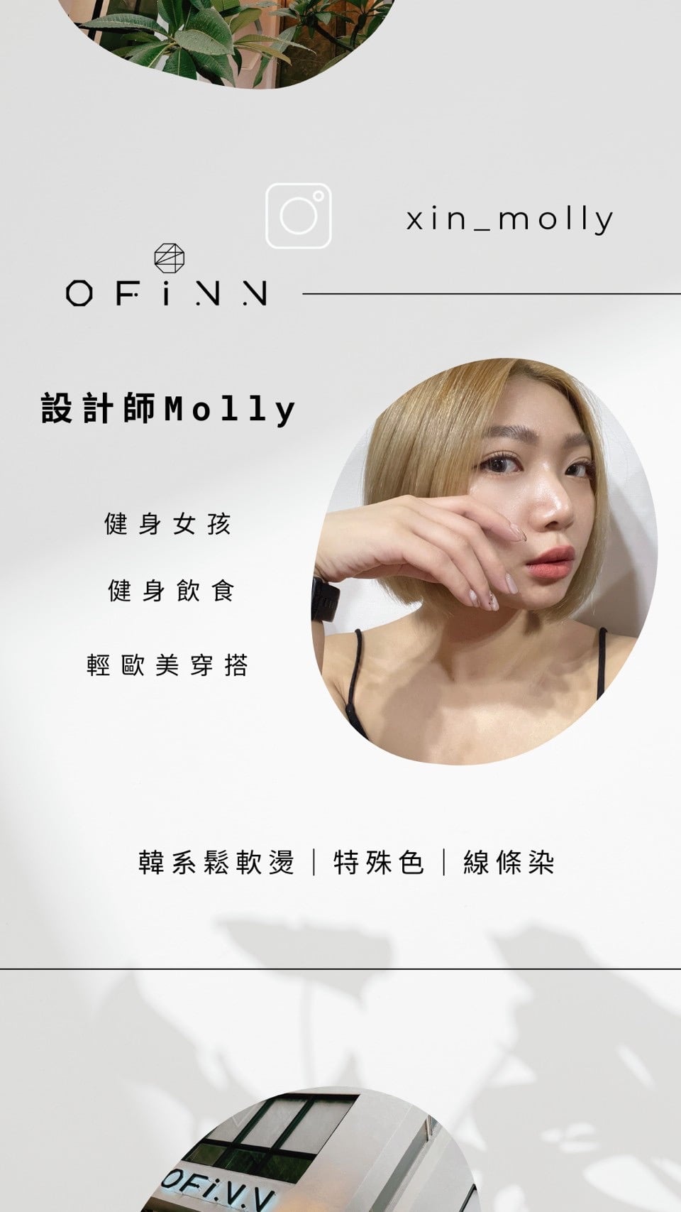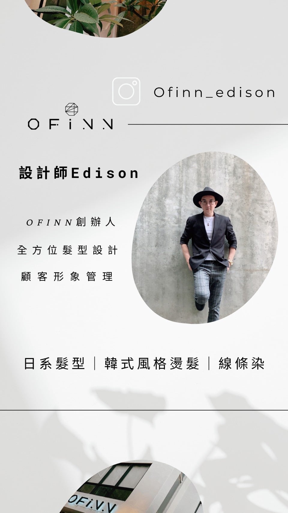 關於Ofinn Ofinn彰化美業第一品牌 2007年4月12日創立品牌開始 從2人小型個人工作室開始,為了實現成為彰化指標美業店家這個目標,努力了好幾年也盼了很久,直到發展到現在,在2021年我們Offinn終於成為彰化當地最大的美業品牌 擁有百坪以上的舒適空間。並備有汽、機車專屬停車場。品牌旗下更有20位專業團隊,技術營業項目服務:髮型設計、頭皮理療SPA、美甲、美睫、睫毛捲翹角蛋白、霧眉、彩妝教學、新娘秘書、會議室展覽空間出租。多項服務只要來一趟就可為你從頭到腳量身打造個人魅力形象。 Ofinn一直有個願景打造彰化在地美業品牌,讓喜愛美業行業的人可以在自己的家鄉打拼,發揮自己的能力讓彰化在地人知道,彰化在地有很多優秀的美髮設計師人才是值得讓你們信任的。 Ofinn的經營設計理念: 不斷定期進修學習最流行的設計元素及最新的髮品資訊,並透過專業設計理論為基礎應用於現場。 Ofinn 的設計理念: 不一昧追求流行,而是在最適合顧客的髮型中帶入流行元素,才能真正滿足顧客需求及訂製適合性髮型。